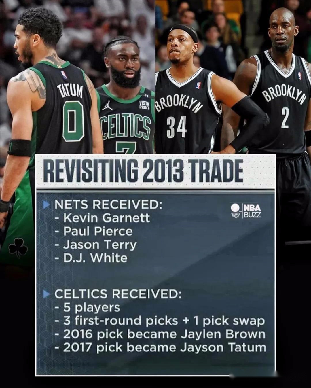 湖人換來保羅-加索爾排名第二。2008年2月,湖人送走夸梅-布朗、阿隆-麥基、克里丹頓、2個首輪、小加索爾簽約權。第三是2013年夏天,凱爾特人把加內特和皮爾斯送到籃網,得到3個首輪簽+1首輪互換,后來用這些首輪簽選中雙探花。