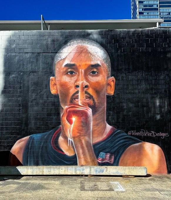致敬經典,夏威夷一畫家在涂鴉墻畫出科比08奧運噤聲慶祝造型