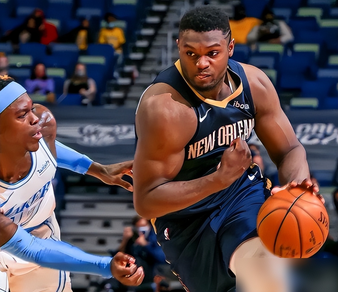 別看錫安官方就1米98身高,他打法比很多內線都暴力。他持球就能突破,就是靠240多斤體重碾壓對手,一旦讓他沖起來,不犯規基本是送分。如果不是太脆了一點,以錫安這樣的身體,場均25分能靠身體輕松鑿出來??纯催@次他發力狀態,手臂比防他的施羅德大腿都粗,這一次錫安打破了“胳膊擰不過大腿”的說法。
