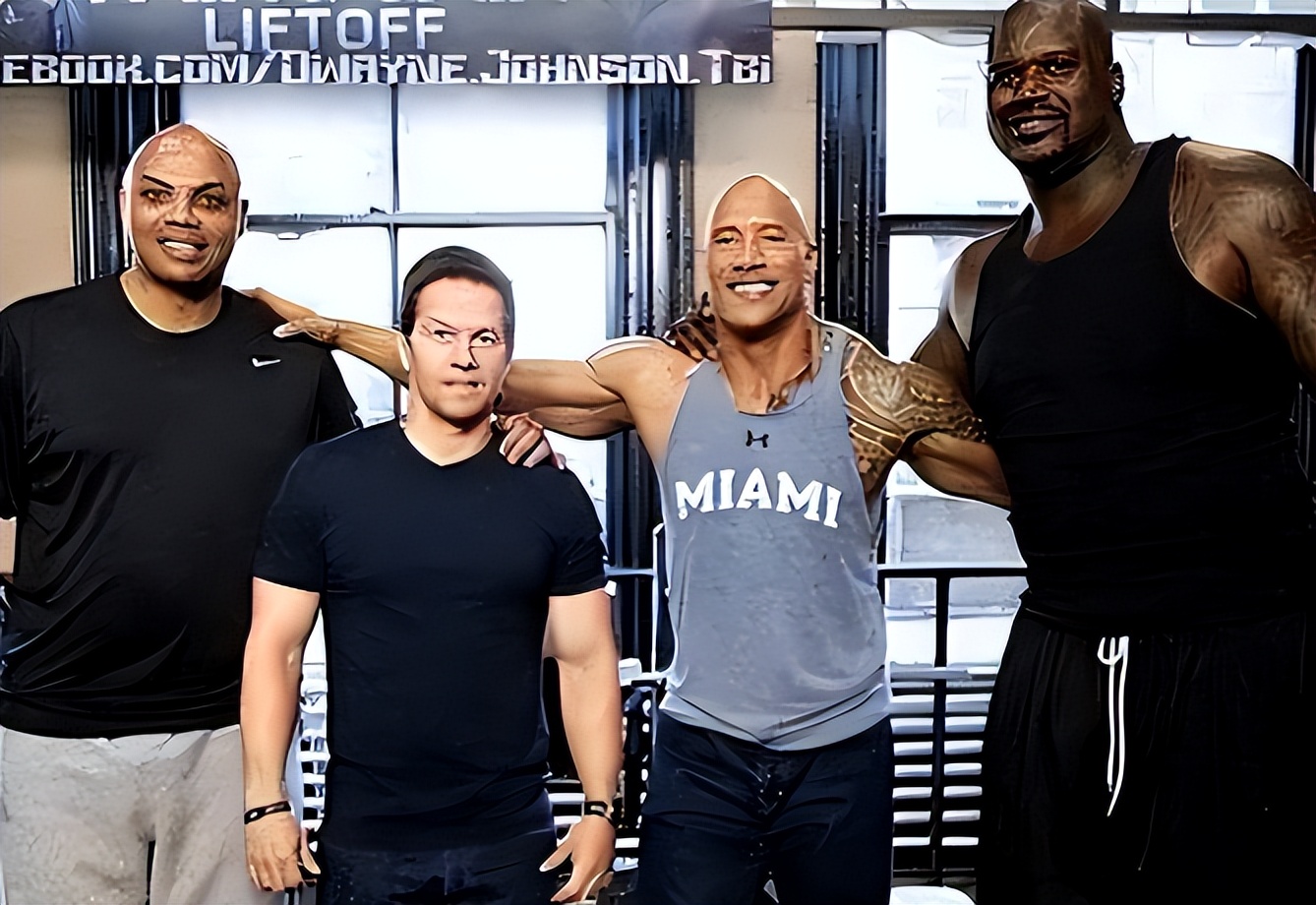 最后是強(qiáng)森,強(qiáng)森在普通人里身材算很不錯(cuò)了。1米9高度,一身腱子肉,在電影里都是硬漢角色。但是這些濾鏡,在NBA球星面前根本不夠看。這次遇到巴克利和奧尼爾,在兩位巨人中間,特別是他站在奧尼爾身邊,真有一種小鳥依人感覺。